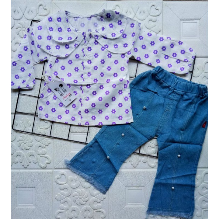 Fashion Bayi & Anak > Pakaian Anak Perempuan > Jas & Setelan > [0-4T] SETELAN BLOUSE KEMEJA CELANA JEANS ANAK PEREMPUAN IMPORT 0-4 TAHUN LENGAN PANJANG BLOUSE BUNGA FLOWER / SETELAN ANAK CEWEK IMPORT CELANA JEANS PANJANG BLOUSE KERAH BUNGA