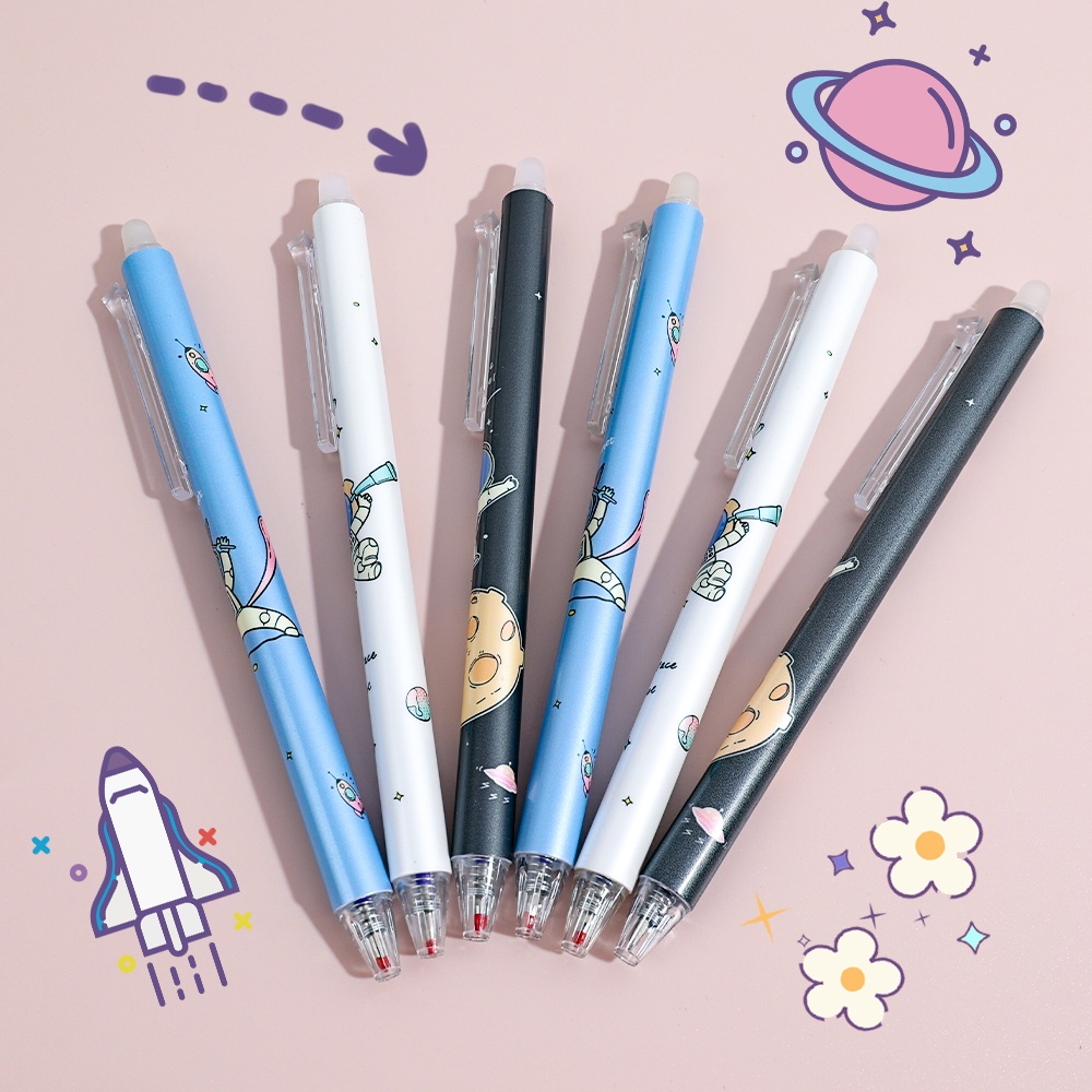 0.5mm Gaya Acak Pena Tulisan Siswa Kawaii Astronot Press Pen Hitam & Biru Pena Netral Panas Dihapus Pena Netral Kantor Sekolah Perlengkapan Alat Tulis