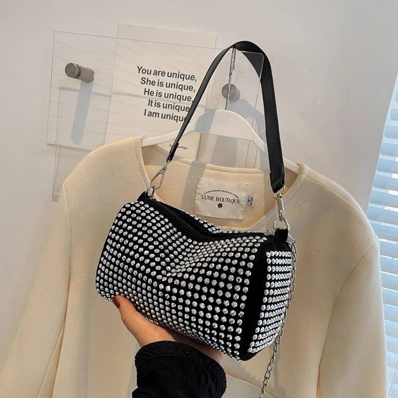 Original : China Bahan : Suede + Sequin Lebar : 19,5 Cm Tinggi : 12 Cm Kedalaman : 8 Cm Tutup Tas : Resleting Anti Macet Tali Panjang : Ada Tali Pendek : Ada Berat : 210 Grams Plastic Wrap + Dust bag