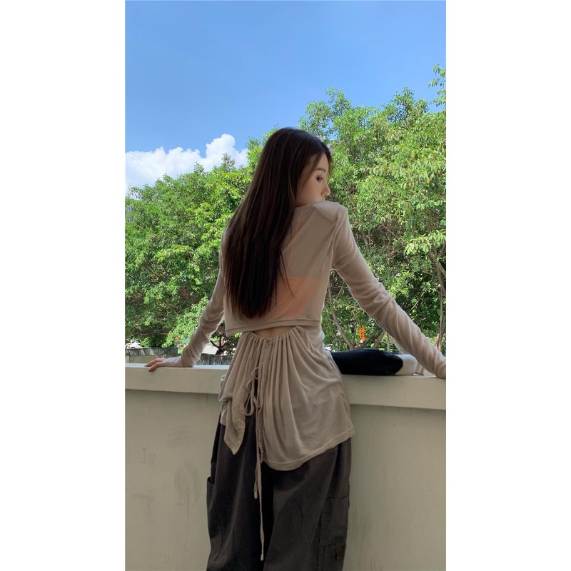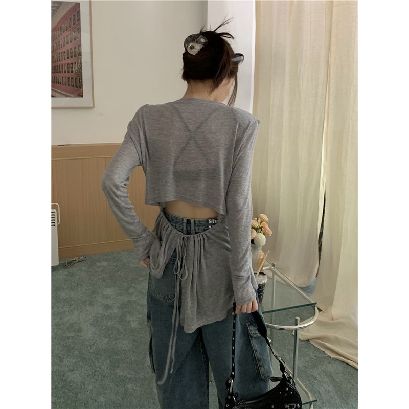 Detail 08#Tembakan Nyata Hemat Biaya Merasa Belakang Berlubang Tali Longgar Lengan PanjangTT-shirt