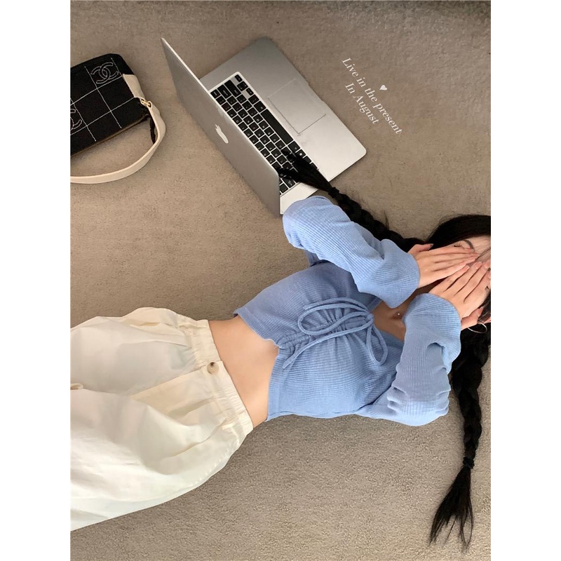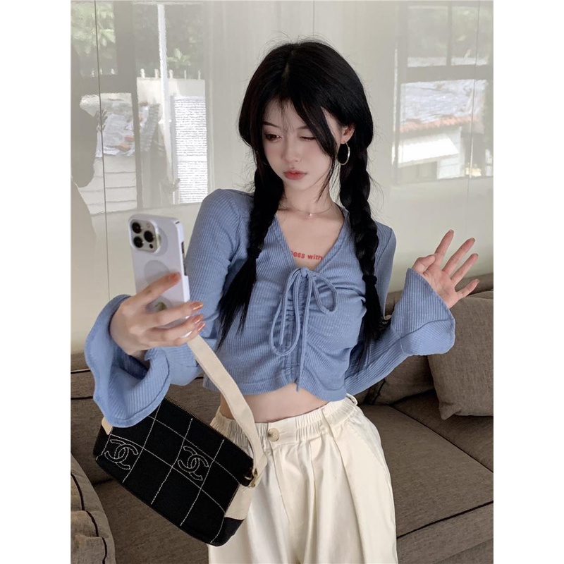 Detail 08#Tembakan Nyata Hemat Biaya RasavLengan Panjang Ikat Tali KerahTT-shirt