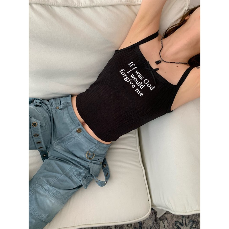 Detail 08#Tembakan Nyata Hemat Biaya Kamisol Gambar Huruf Simpul Pita