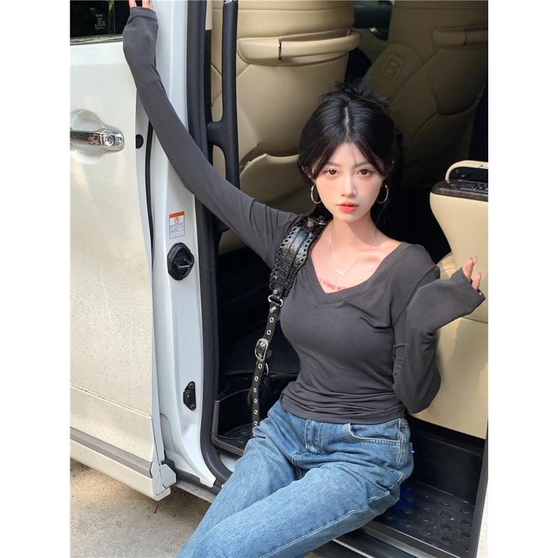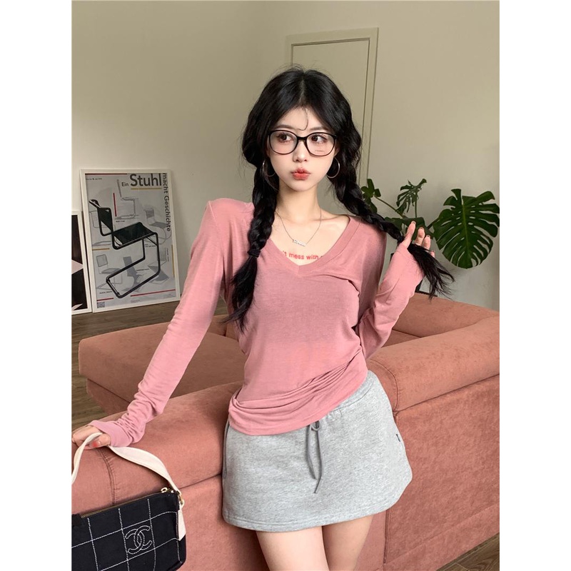 Detail 08#Tembakan Nyata Hemat Biaya Dasar SederhanavKerah Lengan PanjangTT-shirt