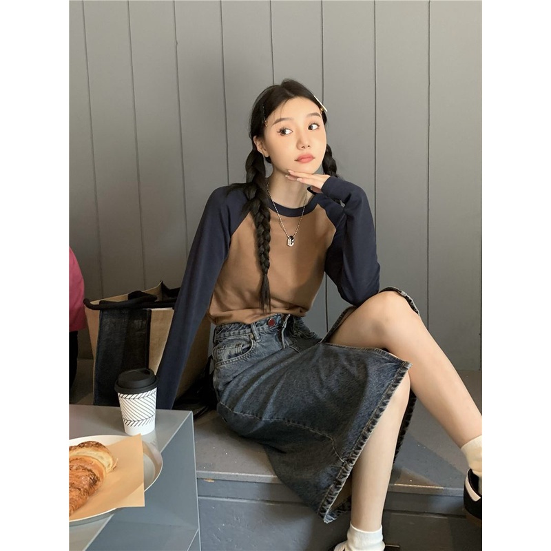 Fashion Muslim > Outerwear > Outerwear Lainnya > 08#Tembakan Nyata Hemat Biaya Lengan Panjang Lengan RaglanTT-shirt
