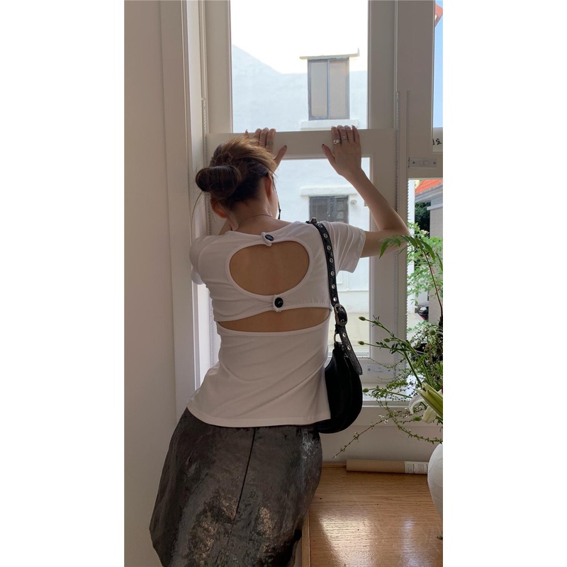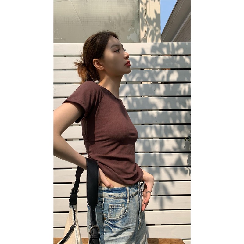 08#Tembakan Nyata Hemat Biaya Lengan Pendek Slim-Fit Kancing Rongga BelakangTT-shirt