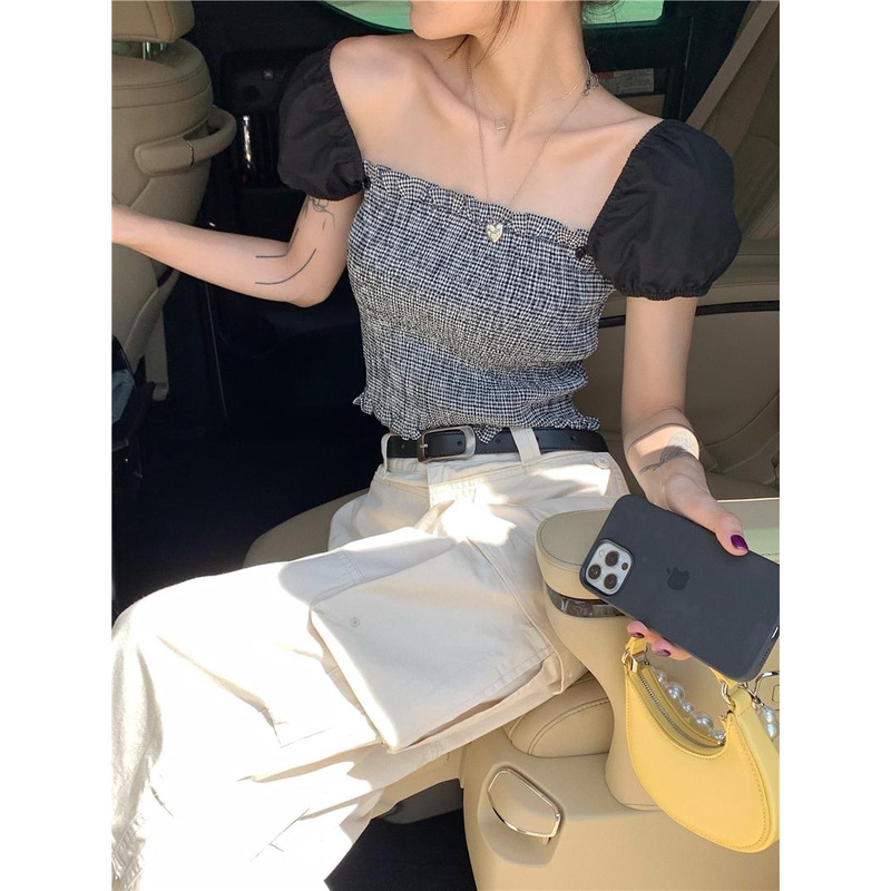 Fashion Muslim > Atasan Muslim Wanita > Kemeja, Blouse, & Dalaman Blouse > 08#Tembakan Nyata Hemat Biaya Atasan Tube Ramping Berlipat Renda Lengan Gelembung Dua Arah