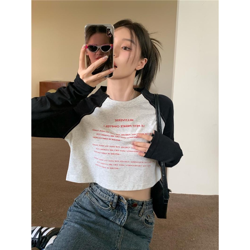 Detail 08#Tembakan Nyata Hemat Biaya Kerah Tidak Beraturan Lengan Raglan Bermotif Lengan Panjang PendekTT03