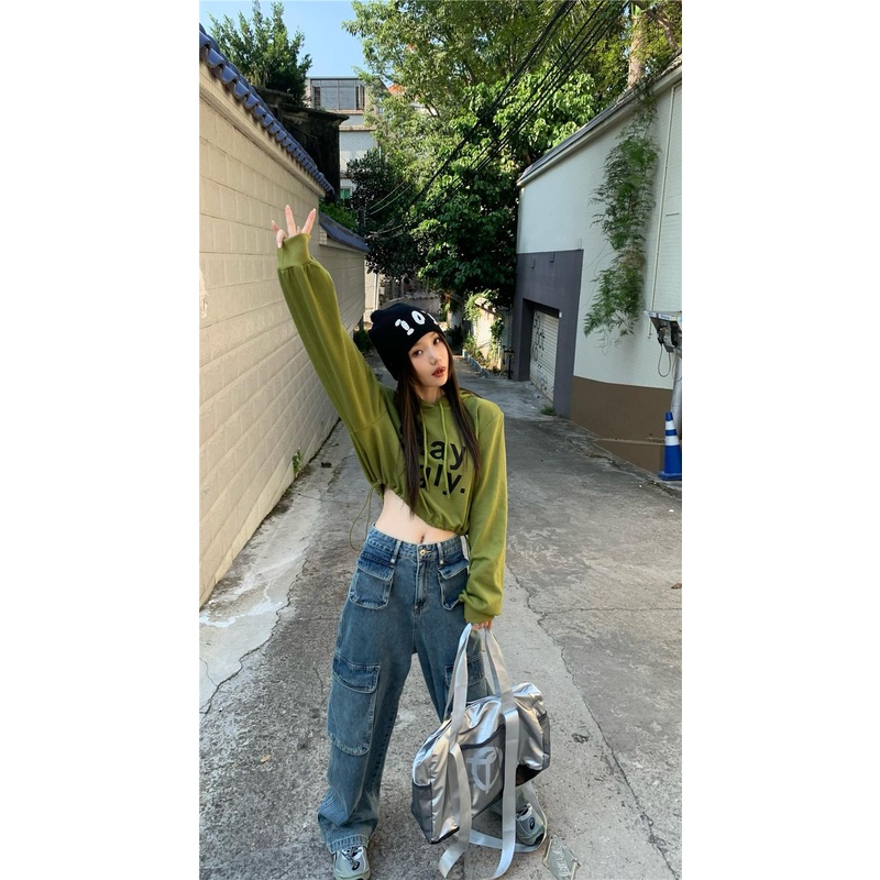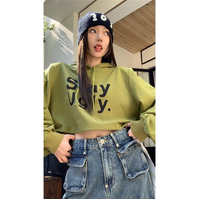 Detail 08#Tembakan Nyata Hemat Biaya Sweatershirt Bertudung Tali, Kaus Lengan Panjang Longgar Cetak Huruf