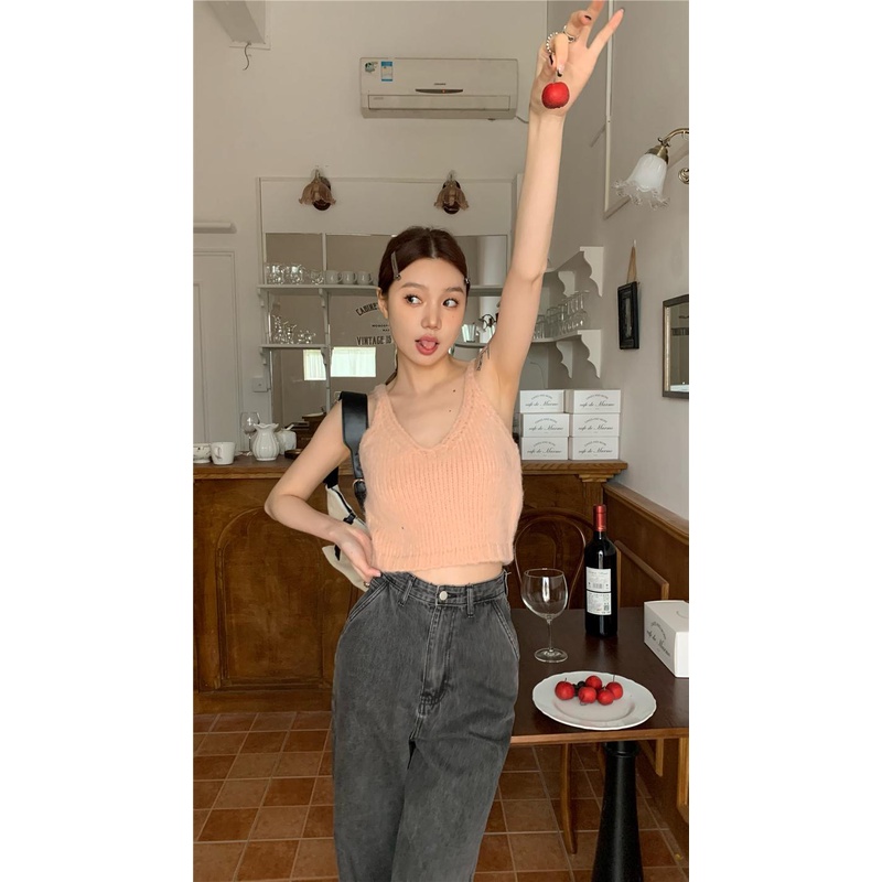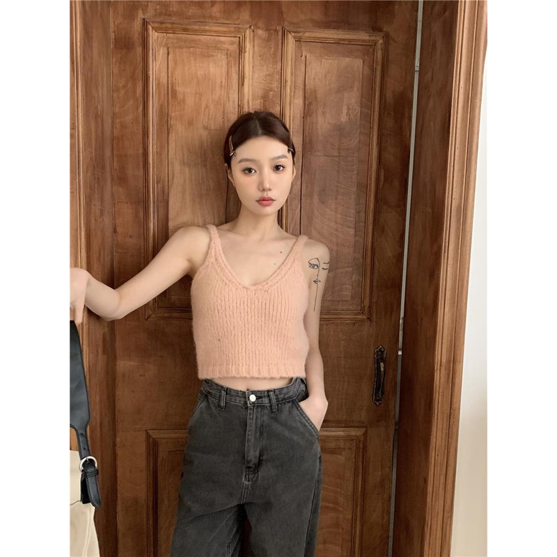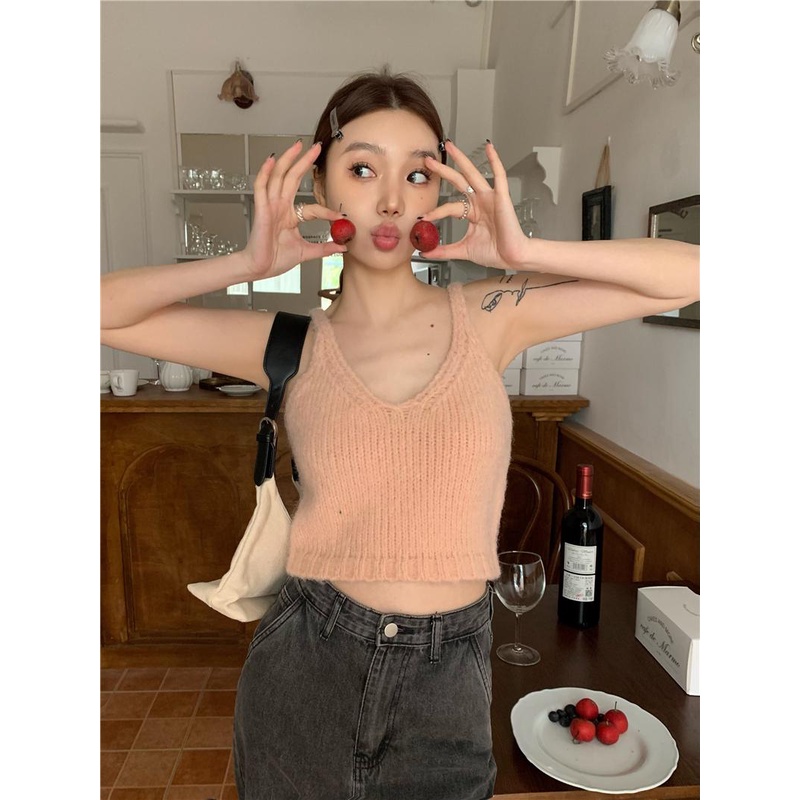 Detail 08#Tembakan Nyata Hemat Biaya Loose-FitVKamisol Rajut, Pakaian Luar Kerah Pakaian Luar