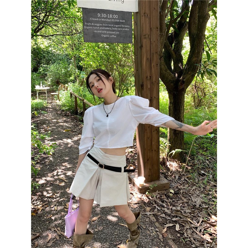 Detail 08#Tembakan Nyata Hemat Biaya Baju Bahu Empuk, Baju Leher Bulat Setengah Lengan dengan Ritsleting Be
