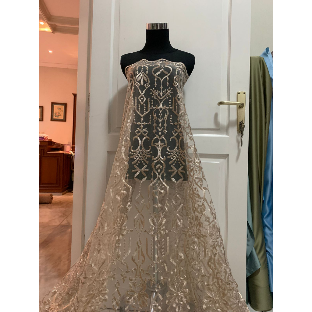 Detail 1/2 meter Kain Bahan Kebaya Brokat Brukat Tile Etnik Madeline New Series Warna Sage Green