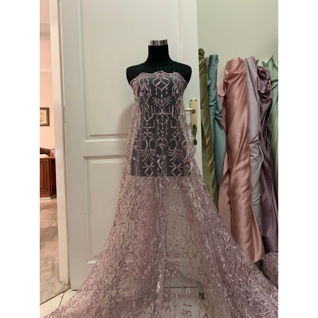 Detail 1/2 meter Kain Bahan Kebaya Brokat Brukat Tile Etnik Madeline New Series Warna Ungu Lilac