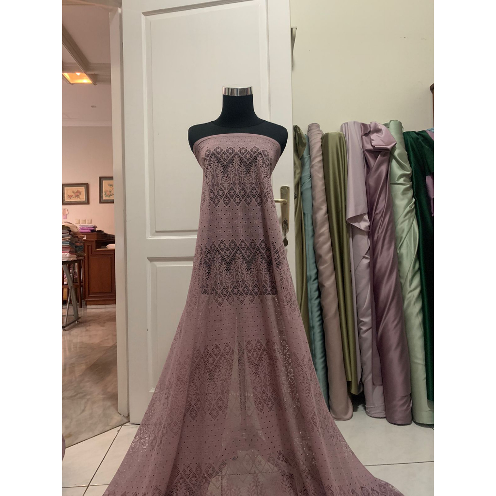 Detail 1/2 meter Kain Brokat Brukat Lace Lolita Warna Ungu Dusty Purple