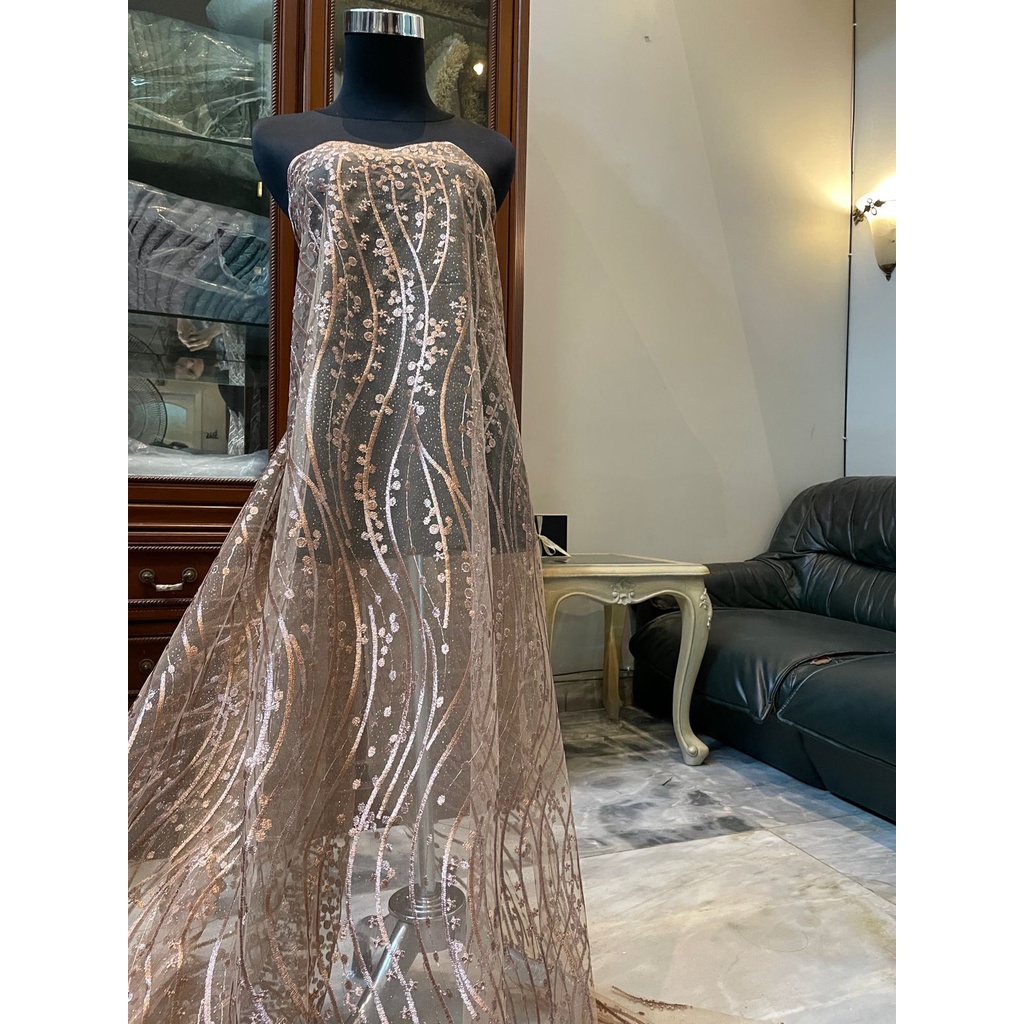 Detail 1/2 Meter Kain Brokat Tile Bordir Gloria Warna Cokelat Milo Mocca