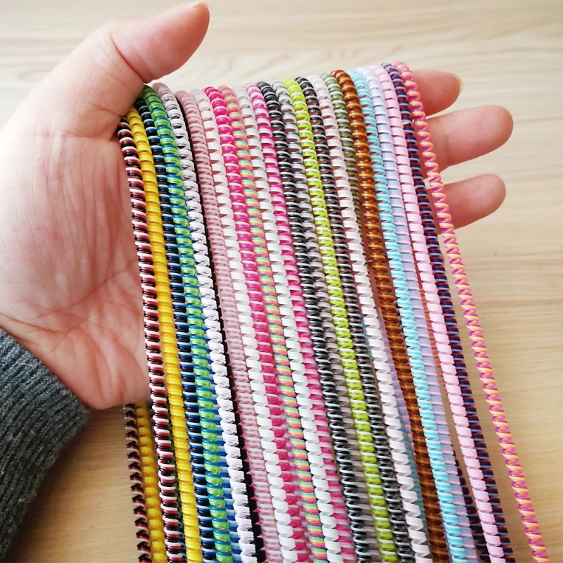 Handphone & Aksesoris > Kabel, Charger, & Konverter > Casing, Penggulung & Pengikat Kabel > 1.4 M Warna-Warni Ponsel Laser Data Line Pelindung Penutup TPU Spiral USB Charging Cable Protection Cord Universal Anti Putus Musim Semi USB Charger Wire Winder Organizer