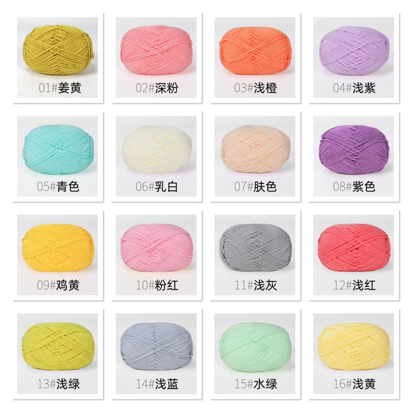 Deskripsi Produk Untai: 4 lapis Hakpen:3-4mm Bahan: Kapas + serat susu Diameter Benang: Sekitar 2.0mm Berat: ± 50gr (kurang 1-5gr) Panjang: Sekitar 110 meter Warna: Seperti yang ditunjukkan dalam gambar. Jumlah: 1 buah