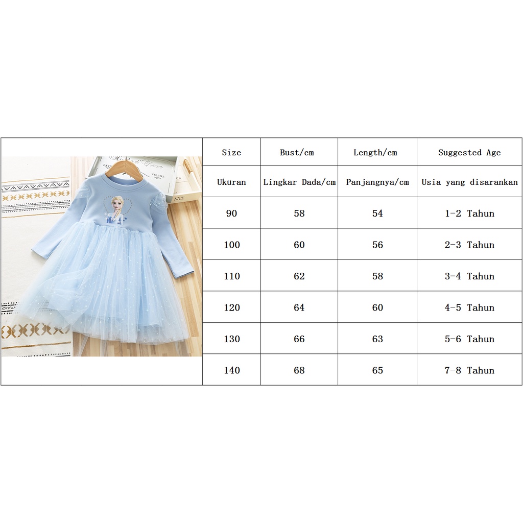 Detail 1-8 thn Anak Frozen Elsa Putri Gaun Gadis Pesta Kostum untuk Anak Tulle Tutu Pernikahan Gaun