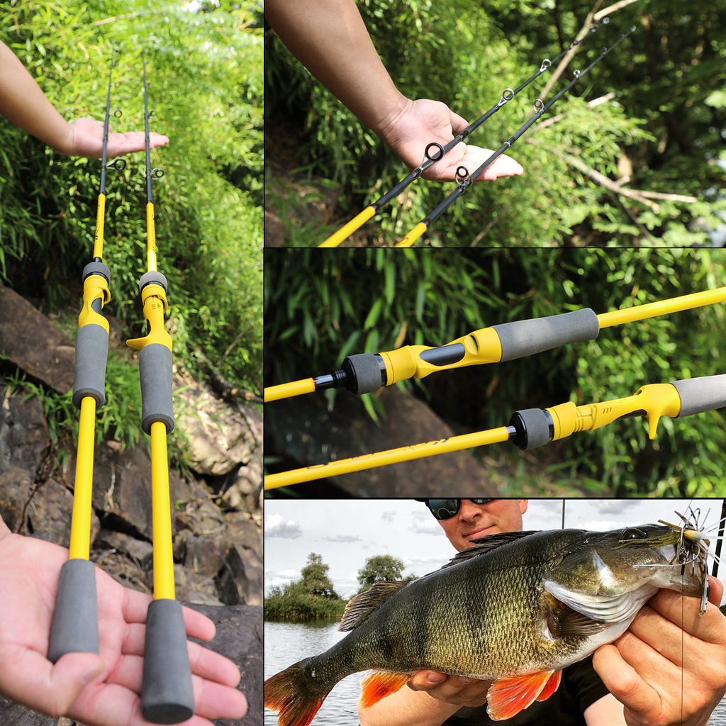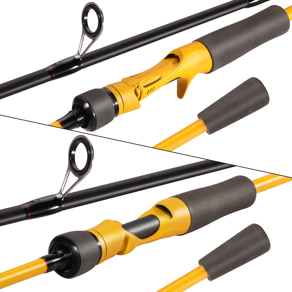 Warna: kuning Panjang: 1.8M, 2.1M Bahan Serat karbon Bagian 2 Bagian Butt Dia: 12.5mm / 0.50in Dia Atas: 2.3mm / 0.09in Berat Garis: 5-10lb Jenis Pemintalan / Pengecoran