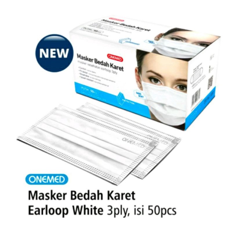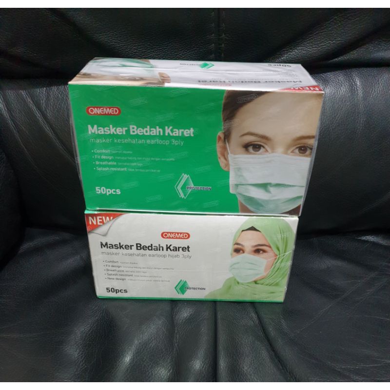 MASKER EARLOOP / HIJAB BEDAH KARET MEDIS MERK ONEMED WARNA PUTIH DAN HIJAU