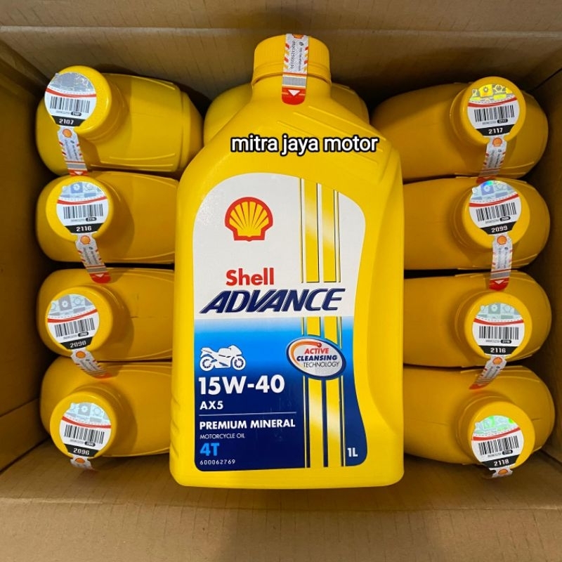 Otomotif > Oli & Pelumas Kendaraan > Oli > 1 DUS = 12 Botol Oli Shell Advance AX5 1Liter 4T Sport 15W-40 4T