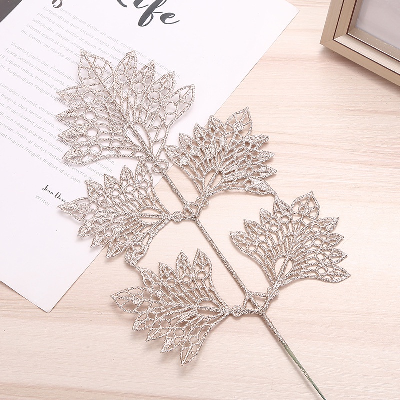 1 Ikat Daun Kipas Palsu Model Hollow Warna Emas Glitter Untuk Dekorasi Pesta Natal