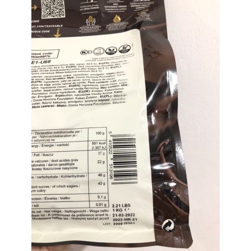 Detail 1 KG Chocolate Couverture Callebaut 54% / CALLEBAUT COUVERTURE 1 KG / KEMASAN ASLI