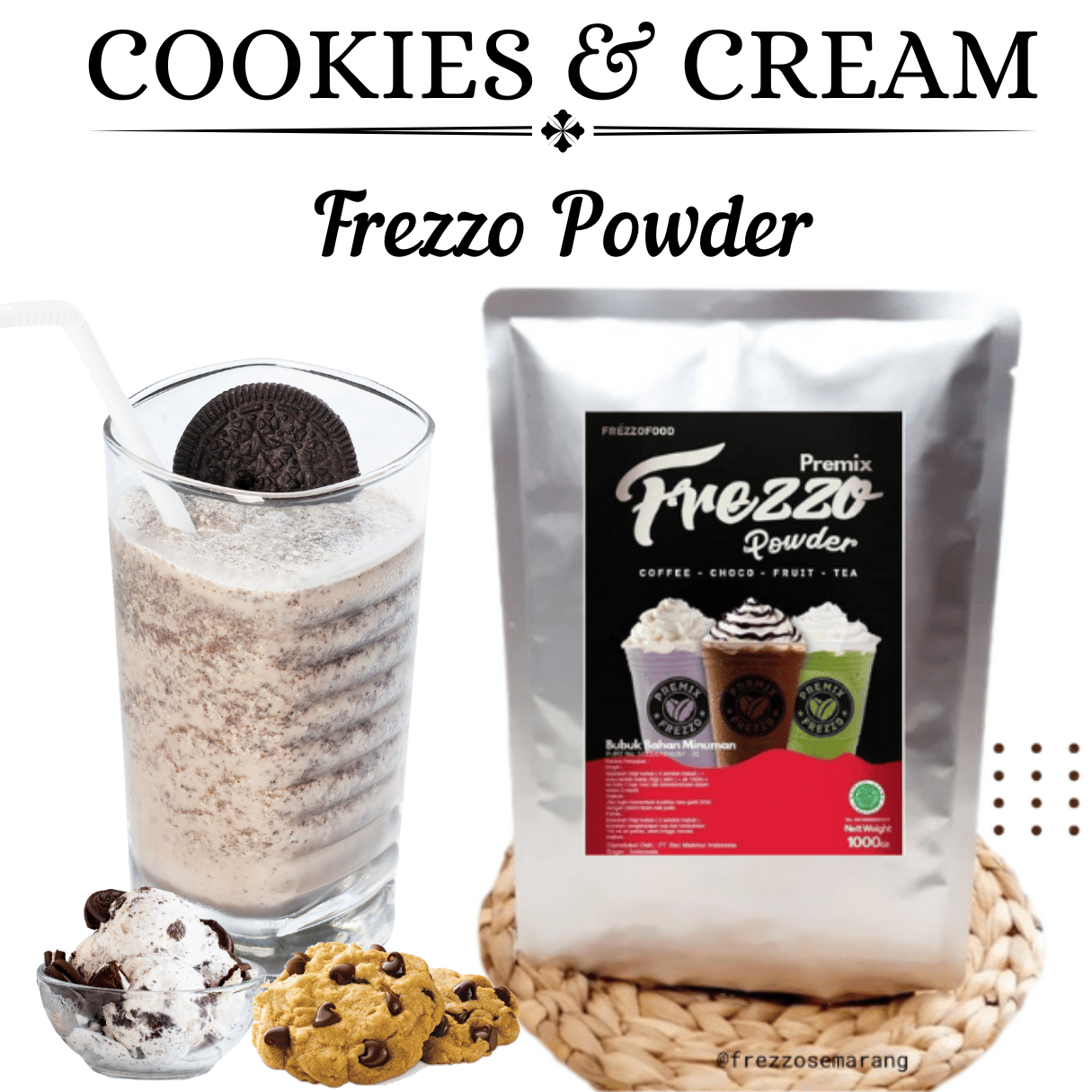 1 KG FREZZO POWDER RASA COOKIES & CREAM | KUKIS & KRIM | BUBUK MINUMAN RASA | POWDER DRINK | BOBA BROWN SUGAR | MINUMAN KEKINIAN | SEMARANG | JAWA TENGAH | HALAL