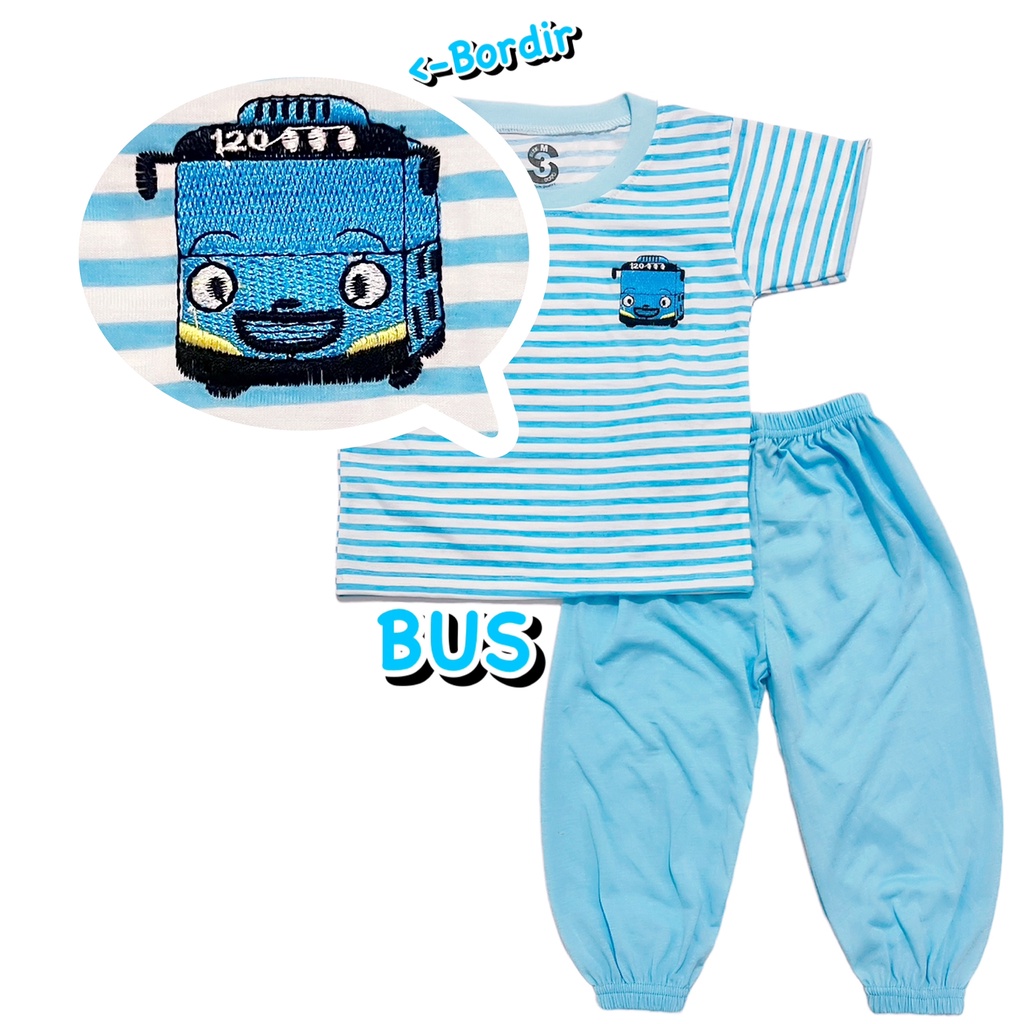 BAJU SETELAN CP JOGER FASHION OBLONG ANAK LAKI-LAKI/COWOK BAHAN BIRU KAOS KATUN BORDIR SALUR BUS/MOBIL