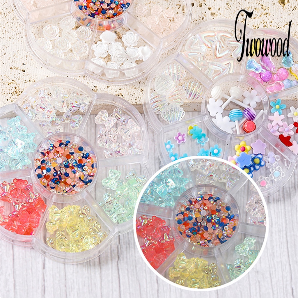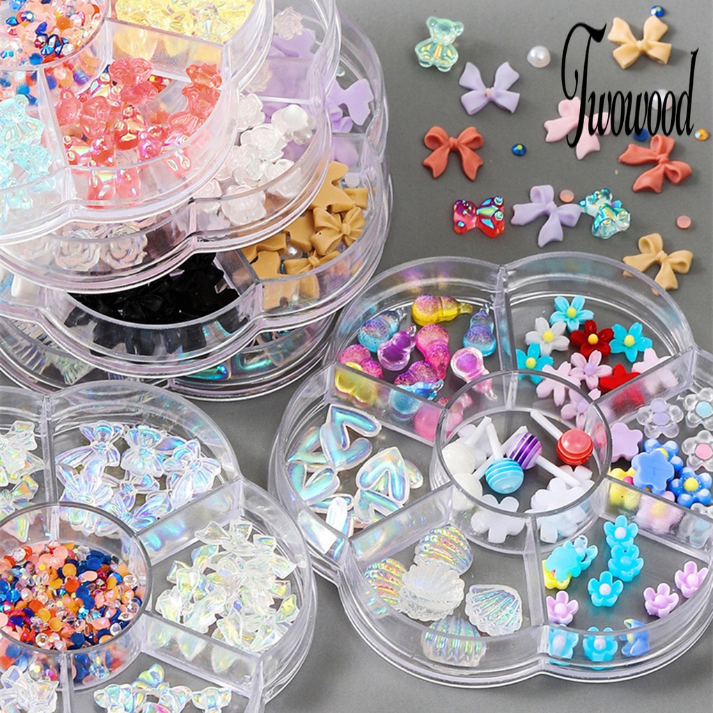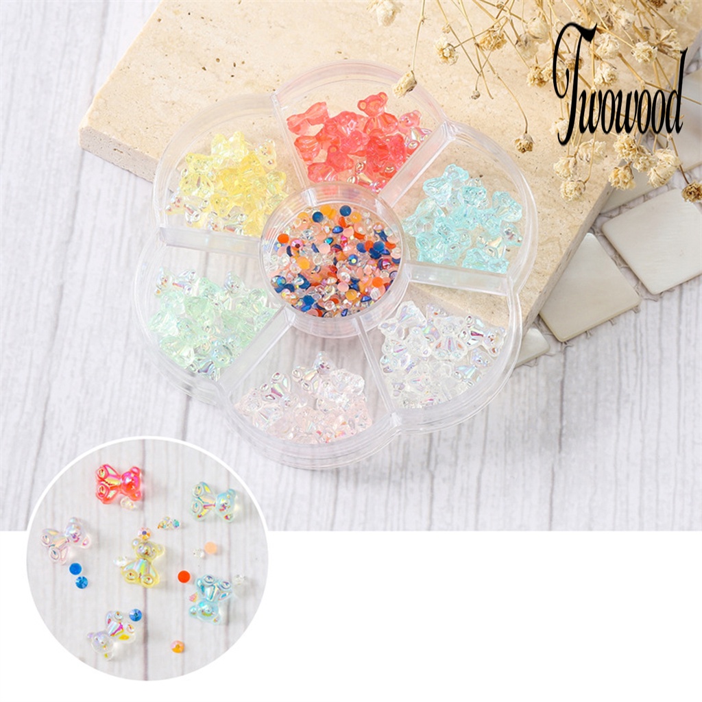 Detail 1 Kotak Ornamen Kuku Bentuk Kartun Beruang 3D Bahan Resin Untuk Nail Art