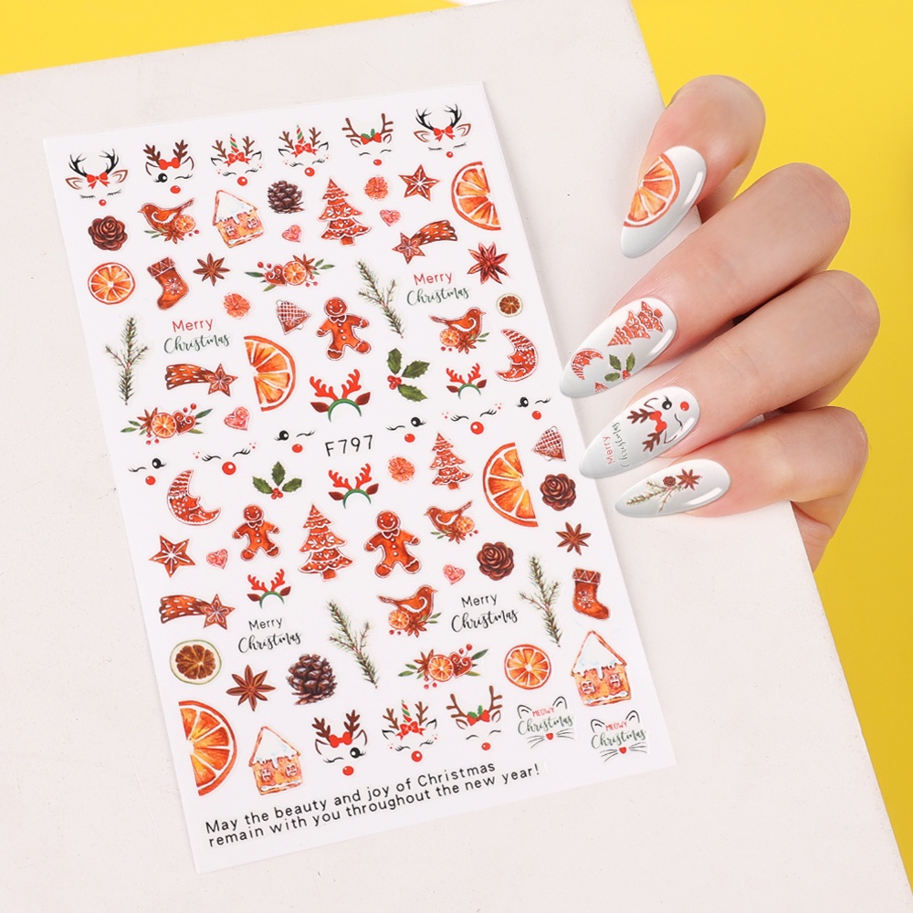 Detail 1 Lembar Stiker Kuku Motif Kartun Natal Snowflake Holly Tangerines Daun Burung Untuk Dekorasi Manicure