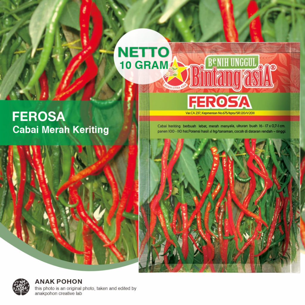 Detail (1 PACK) Benih Cabai Merah Keriting FEROSA Buah Lebat Seeds - BINTANG ASIA - 10 GRAM