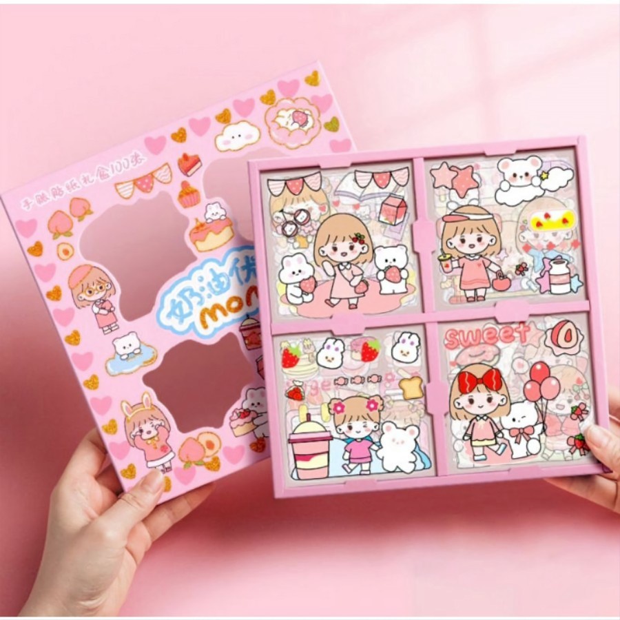 Detail 1 pack isi 100 Lembar Pcs Stiker Box Merk SENMU SEN MU Momo Stiker Set - YS Shop