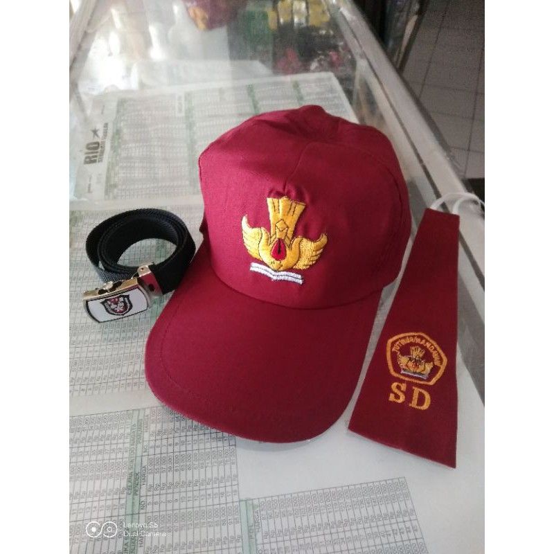 1 paket topi dasi sabuk dasi SD perempuan atau laki-laki