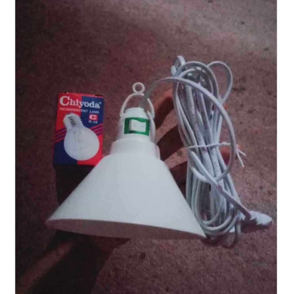 1PAKET LAMPU UNTUK KANDANG HEWAN. -KABEL 5 METER -FITTING -KAP LAMPU -GANTUNGAN -LAMPU PIJAR 5WAT (TINGGAL PASANG COLOK NYALA)