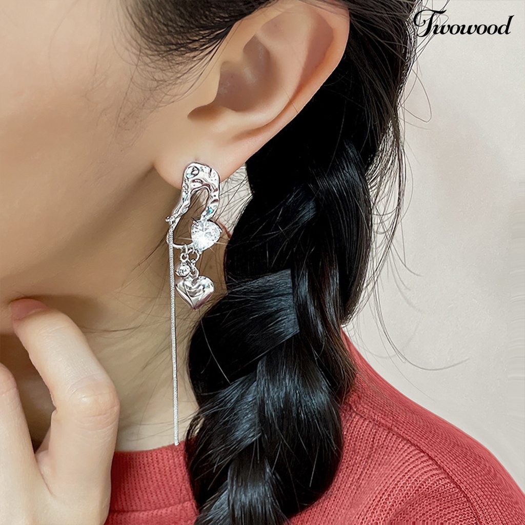 Detail 1 Pasang Anting Bentuk Paperclip Asimetris Untuk Wanita