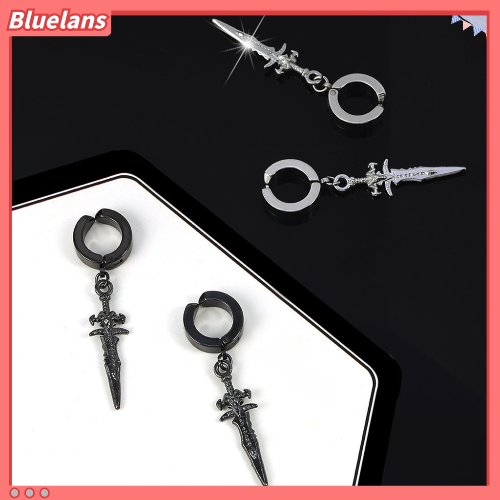 Detail 1 Pasang Anting Drop Bentuk Pedang Warna Solid Gaya Punk Portable Untuk Pria