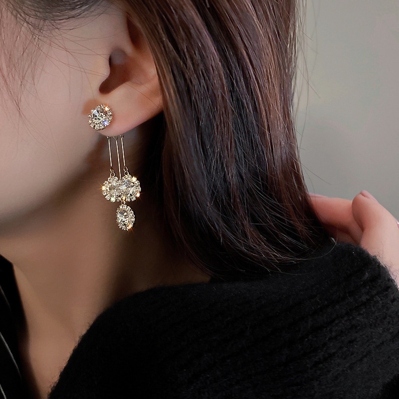 Detail 1 Pasang Anting Giwang Panjang Elegan Dengan Kristal + Berlian Imitasi Untuk Wanita