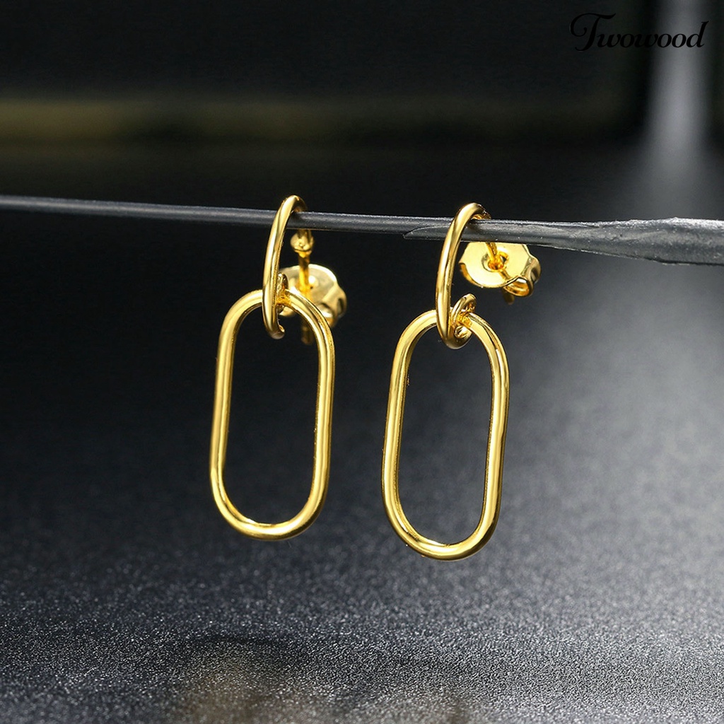 Detail 1 Pasang Anting Hook Bentuk Setengah C Oval Geometris Untuk Pesta Pernikahan