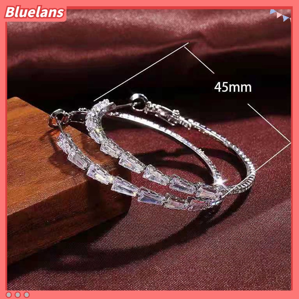 Detail 1 Pasang Anting Hoop Berlian Imitasi Bentuk Bulat Untuk Prom