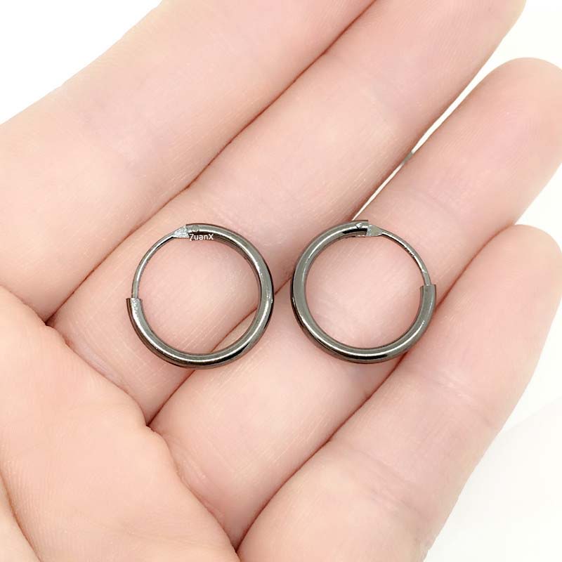 Detail 1 Pasang Anting Hoop Hypoallergenic Bahan 925 Sterling Silver Ukuran 14-20mm Warna Hitam