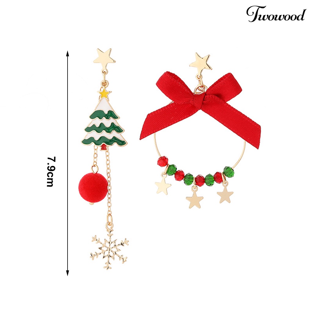 Detail 1 Pasang Anting Rumbai Panjang Asimetris Desain Kartun Pohon Natal Rusa Penguin Untuk Hadiah