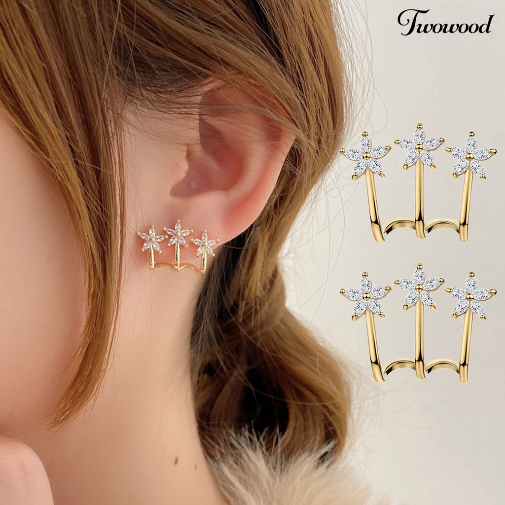 Detail 1 Pasang Anting Stud Desain Bunga Tahan Lama Mudah Digunakan Untuk Anniversary