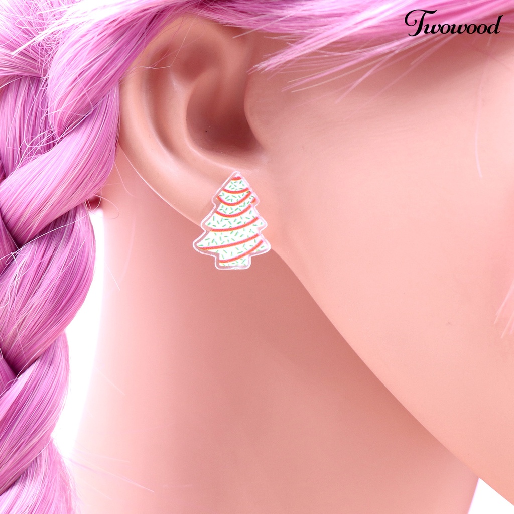 Detail 1 Pasang Anting Stud Mini Bentuk Pohon Natal Bahan Akrilik Hypoallergenic Untuk Wanita