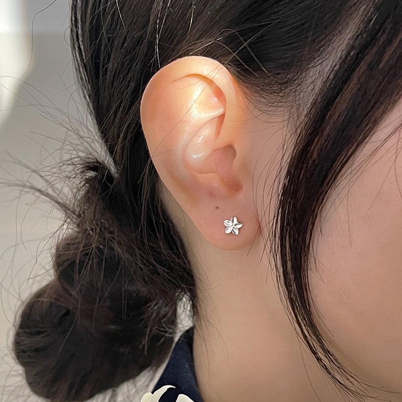 Detail 1 Pasang Anting Stud S925 Silver Hypoallergenic Bentuk Bunga 3D Gaya Korea