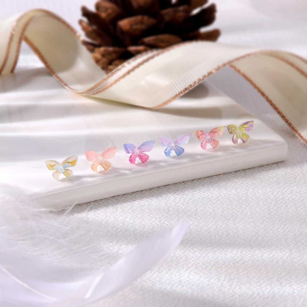 Detail 1 Pasang Anting Stud Tindik Tulang Rawan Bentuk Kupu-Kupu Hypoallergen Warna-Warni Bahan Resin