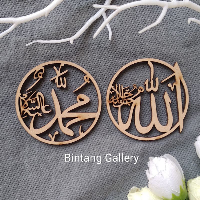 1 Pasang Lafadz Allah Mohammad Bahan dari MDF 3 mm ( TANPA LAPISAN CAT ) harga yang tertera 1 pasang Allah Muhammad ukuran 5 * 5 cm dengan ketebalan 3 MM cocok untuk aplikasi mahar scrapbook