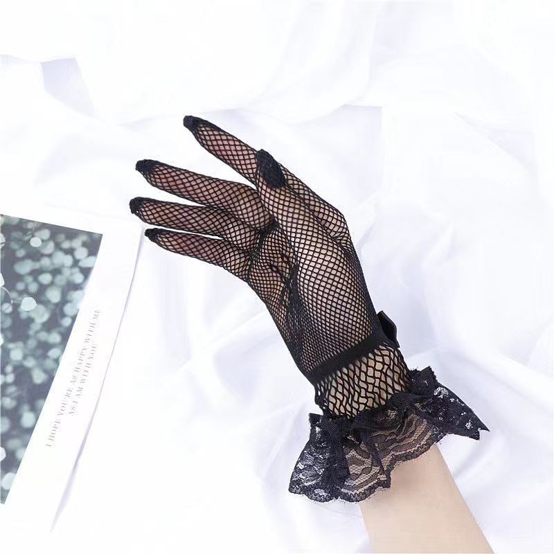 Detail 1 Pasang Sarung Tangan Pendek Lace Sarung Tangan Pesta Lace Pita Jaring Halus Women Stretch Lace Gloves