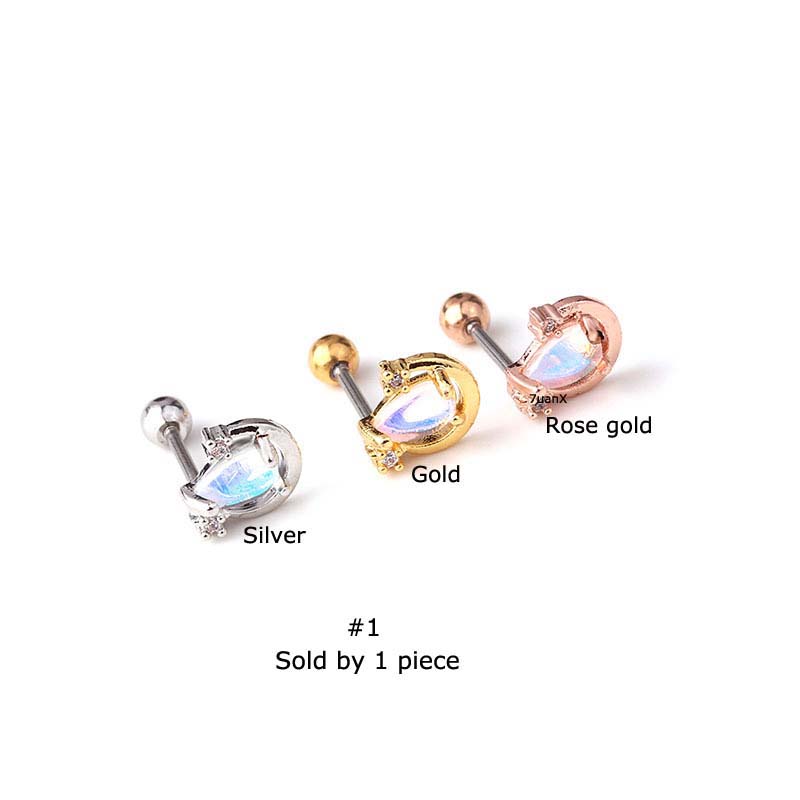 Detail 1 Pc Anting Stud 20gauge Bentuk Bintang Bulan Salib Bahan Stainless Steel