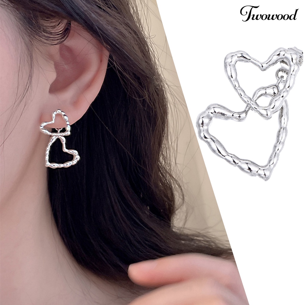 Detail 1 Pc Anting Stud Hypoallergenic Bentuk Hati Model Hollow Out Lapis Perak Untuk Wanita