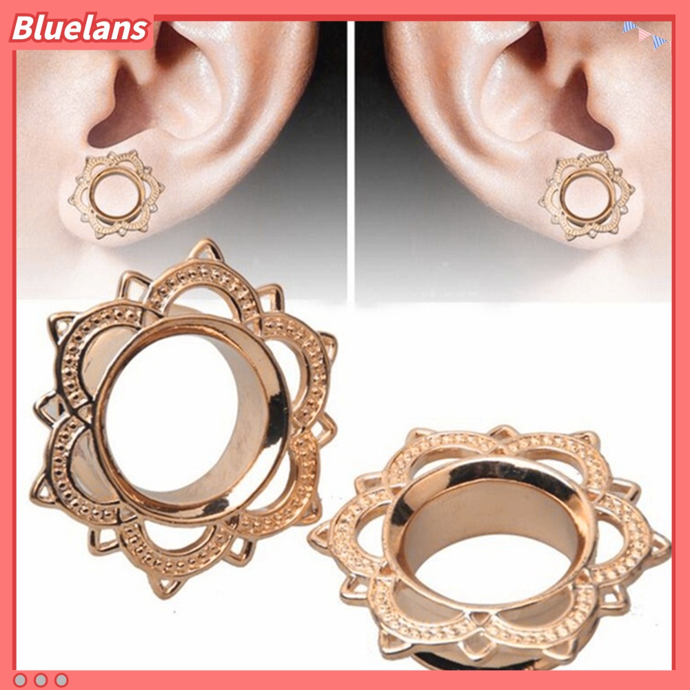 Detail 1 Pc Anting Tindik Expander Desain Bunga Lotus Double Flare Untuk Unisex